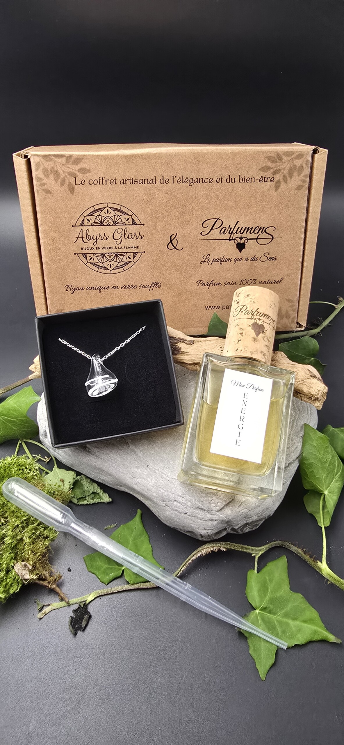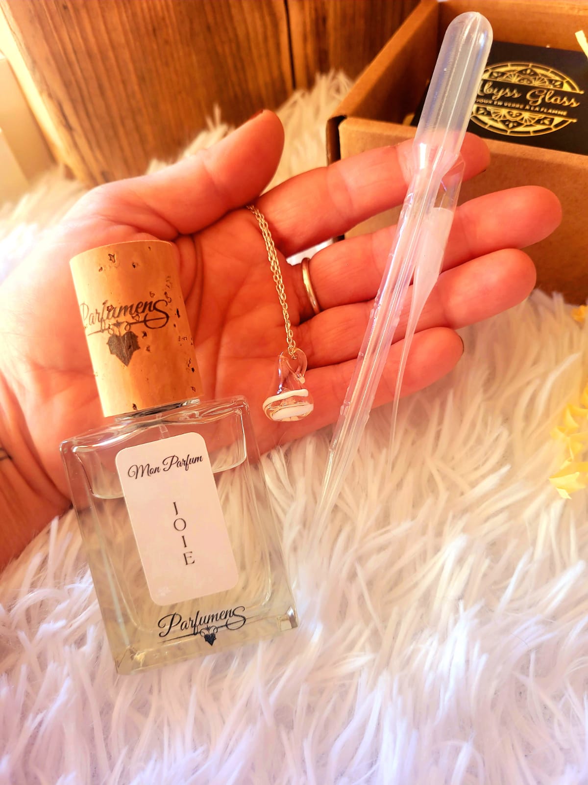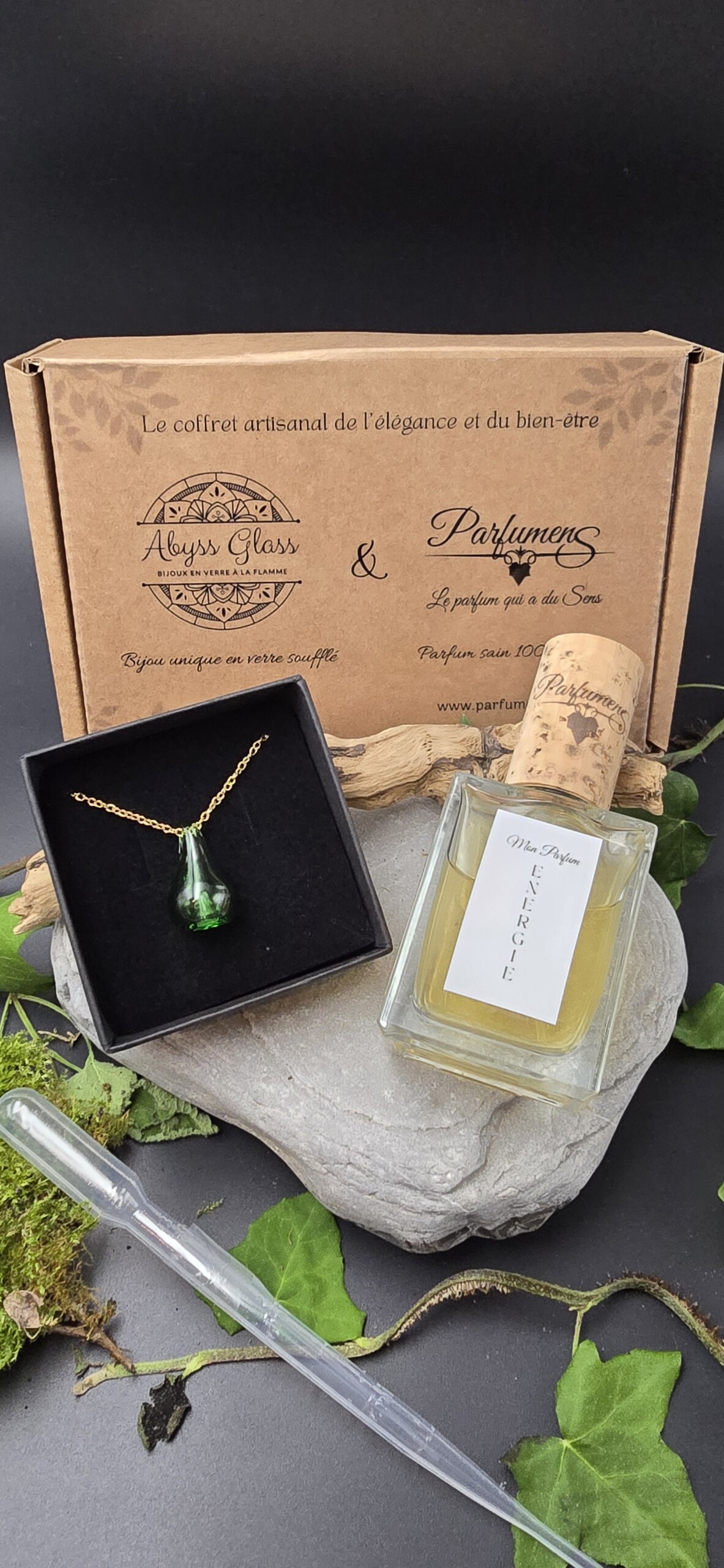 Coffret personnalisable Bijou Olfactif & Parfum naturelUne collaboration unique entre Céline de Abyss Glass, souffleuse de verre à la flamme et Amandine de Parfumens, parfumeuse naturelle et aromachologue ✨